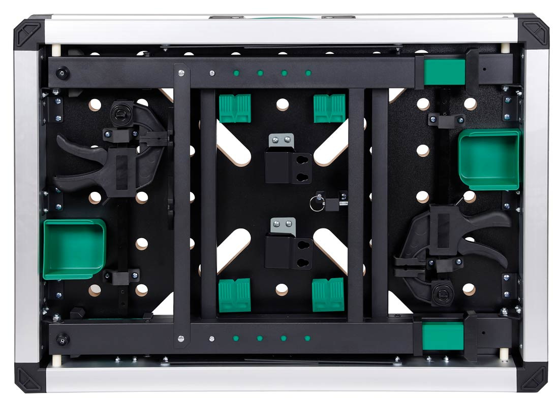 Univerzální využití jako pracovní stůl, montážní stůl i základna pro polostacionární stroje s mnoha upevňovacími body..