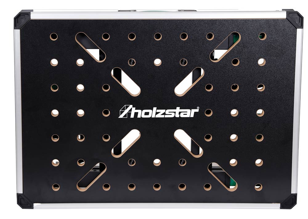 Pracovní MDF deska s rastrem otvorů pro upínací systémy a příslušenství.