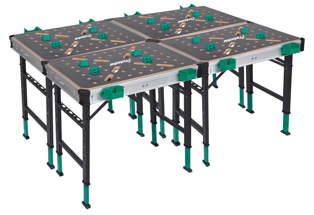 Možnost propojení více stolů umožnuje vytvoření modulární pracovní plochy. Spojování se provádí pomocí dodávaných rohových spojek..