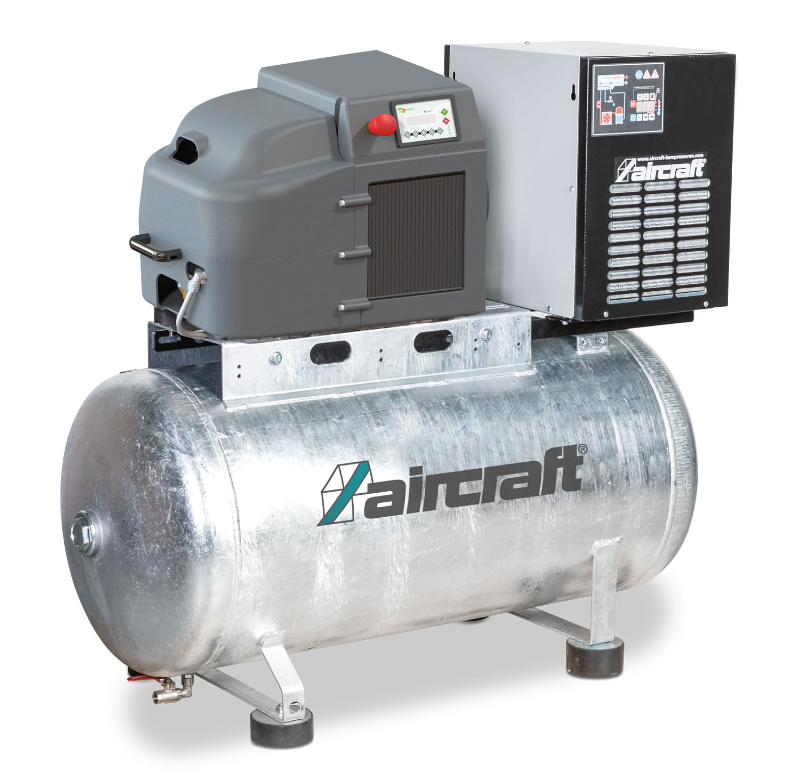Stacionární kompresor k trvalému odběru stlačeného vzduchu s tlakovou nádobou, sušičkou vzduchu a ovládáním pomocí řídící jednotky K-Tronic. Vhodný pro časté změny zatížení díky regulaci teploty oleje.