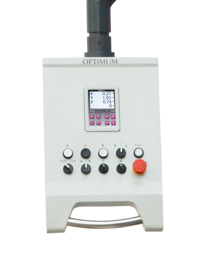Univerzální vrtačko-frézka s digitálním odměřováním polohy a litinovým podstavcem.
